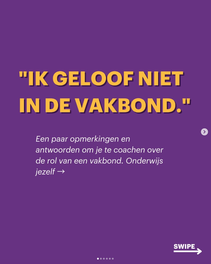 Ik ontwikkelde educatieve content over werknemersrechten, met feitjes zoals “Je hebt recht op doorbetaling bij ziekte”. Daarnaast begeleidde ik het team in het zelf opnemen van video’s, waardoor de content persoonlijker werd en de boodschap sterker overkwam.